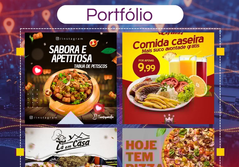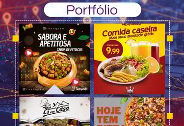 Desenvolvo artes profissionais para redes sociais que destacam suas promoções e pratos.